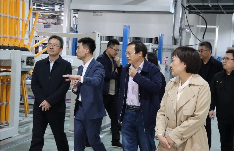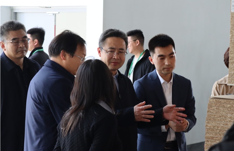 領導一行先后參觀了千山新建自動化生態(tài)板生產車間、高標準成品庫、國內先進的浸漬膠膜紙飾面人造板自動化壓貼生產線,對工廠先進化、設備智能化、板材無醛化,給予了充分肯定。