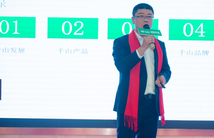 千山板材常德運(yùn)營中心總經(jīng)理肖波致辭。肖總鋪開產(chǎn)品升級迭代的大背景,給大家分享了千山板材在常德市場的發(fā)展動態(tài)以及接下來的奮斗目標(biāo)。