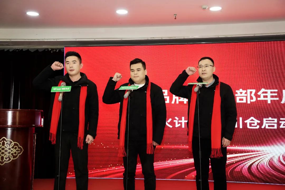 接著四川直營倉曹全震、滿彬、閆志玉進行宣誓?!耙陨碜鲃t,全力以赴,帶領(lǐng)團隊不斷突破自我,完成2024年公司既定目標(biāo)!凱旋而歸!”戰(zhàn)旗在手、責(zé)任在肩、誓言聲聲,響徹會議大廳,這也意味著千山家具板又誕生了一支生力軍!