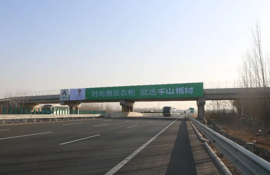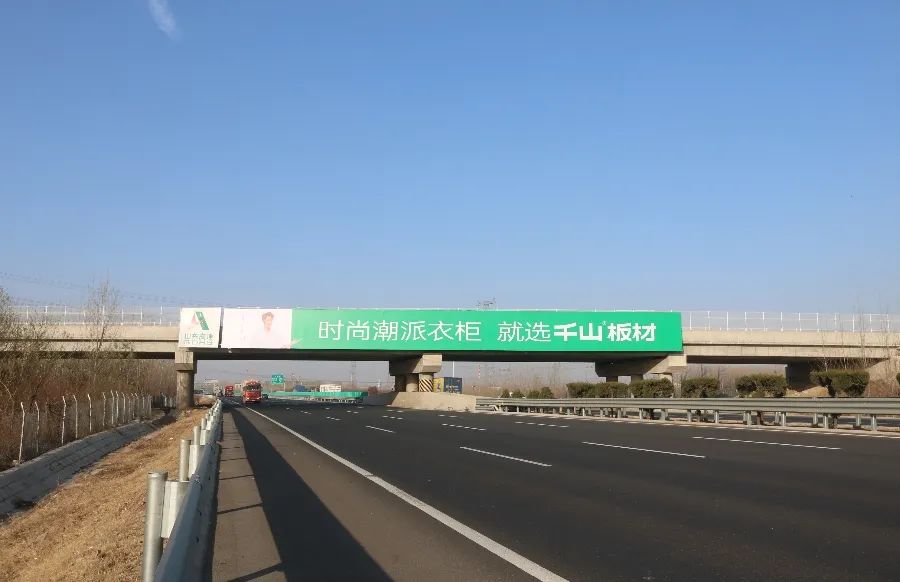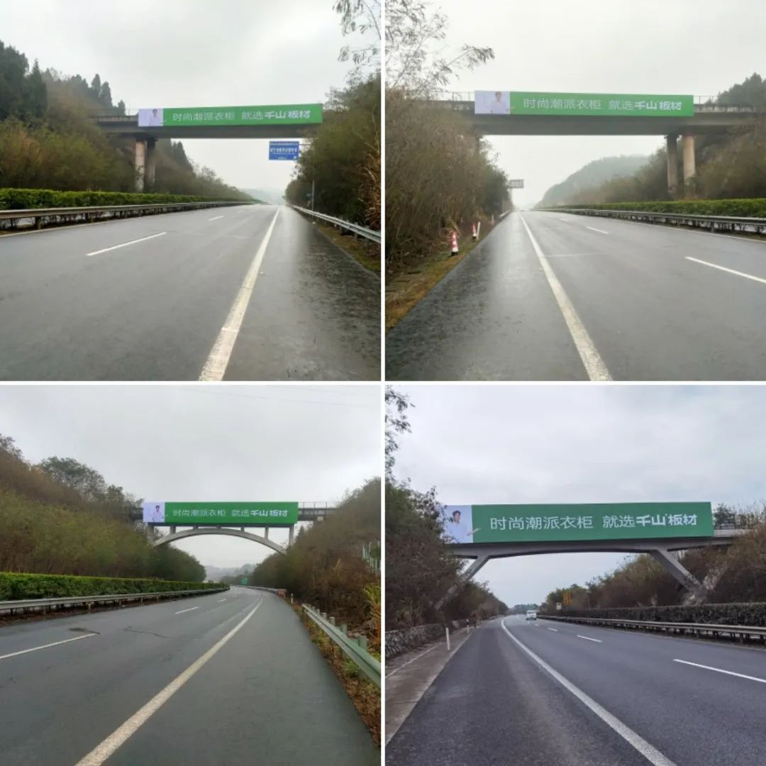 本次高速?gòu)V告形式依舊涵蓋跨線橋、單立柱,以千山2.0品牌色調(diào)綠色為主色調(diào),展示了全新品牌代言人李晨以及全新品牌LOGO。廣告畫面鮮艷、美觀、簡(jiǎn)潔,進(jìn)一步將“時(shí)尚潮派衣柜 就選千山板材”的品牌主張傳遞給更多的消費(fèi)者。