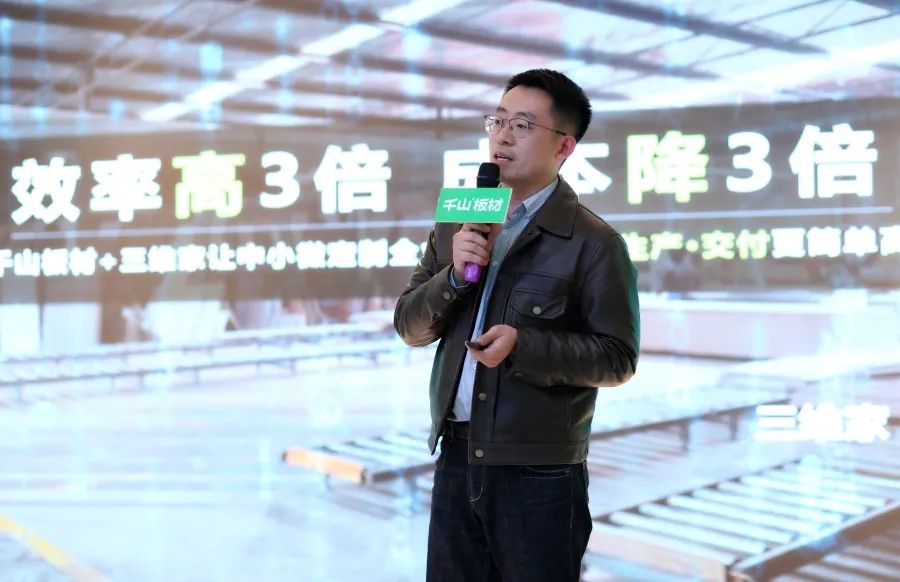 三維家山東大區(qū)經(jīng)理李清帥詳細(xì)介紹了三維家前后端一體化的貫通。李經(jīng)理分享到,三維家一體化實(shí)現(xiàn)銷售前端與生產(chǎn)后端的數(shù)字化、高效化生產(chǎn),三維家與千山板材的深度合作,必將助力終端,實(shí)現(xiàn)共贏。