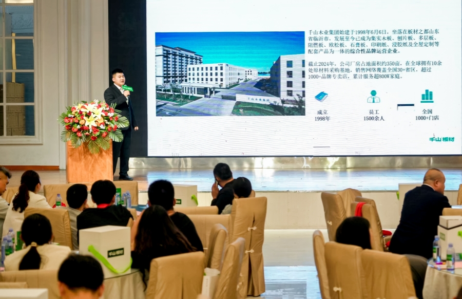 千山板材銷售部總監(jiān)董向陽(yáng)上臺(tái)致辭。董總表示,千山堅(jiān)定品牌高端化發(fā)展方向,堅(jiān)定產(chǎn)品研發(fā)投入,堅(jiān)定營(yíng)銷渠道精進(jìn)!站在全面發(fā)展的新階段,千山已做好充足準(zhǔn)備,和伙伴們一起迎接挑戰(zhàn),合作共贏。