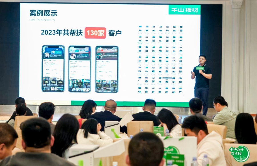 千山板材大區(qū)經(jīng)理王殿忠為大家分享了《新媒體運(yùn)營(yíng)獲客》,向大家展示了千山板材優(yōu)秀經(jīng)銷商的短視頻賬號(hào)實(shí)例,對(duì)標(biāo)簽內(nèi)容進(jìn)行剖析,鼓勵(lì)大家勇于提升新媒體運(yùn)營(yíng)能力,挖掘線上客戶,助力終端銷售。