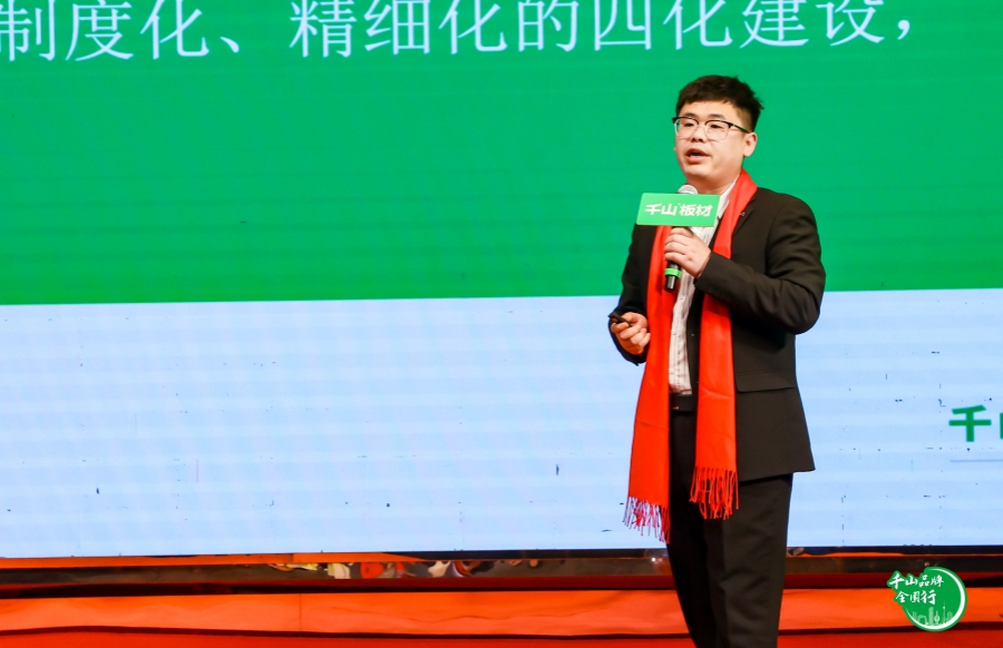 千山板材銷售部總監(jiān)董向陽致辭。董總分享到,當(dāng)前的市場(chǎng)環(huán)境競(jìng)爭(zhēng)激烈,要聚焦產(chǎn)品和服務(wù),協(xié)同一系列營銷組合拳,才能支撐業(yè)務(wù)的高速增長(zhǎng),千山將和伙伴們攜手共進(jìn),合作共贏。