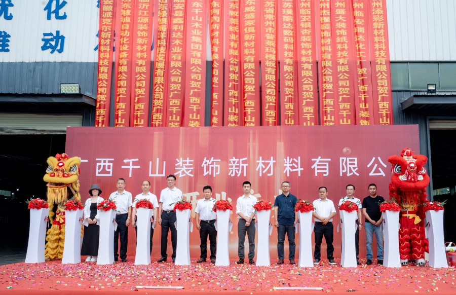 2024年5月25日,千山集團廣西生產(chǎn)基地盛大開業(yè)!作為專業(yè)的三聚氰胺浸漬紙和配套膠水供應商,廣西千山裝飾新材料有限公司占地面積15000平方米,計劃建設浸漬貼面紙生產(chǎn)線10條,年產(chǎn)浸漬貼面紙3000萬張,同時配套生產(chǎn)環(huán)保膠水。廣西基地的起航必將助力千山蓄長虹之勢,邁向發(fā)展新高峰!