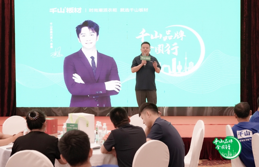 千山板材朝陽倉負責人周寶奇致辭。周總分享了自己與千山共同成長的故事,在與千山的合作中,深刻體會到品牌發(fā)展的力量。周總鼓勵大家發(fā)揮自身優(yōu)勢和千山的品牌效應,贏得市場以及消費者的信任。