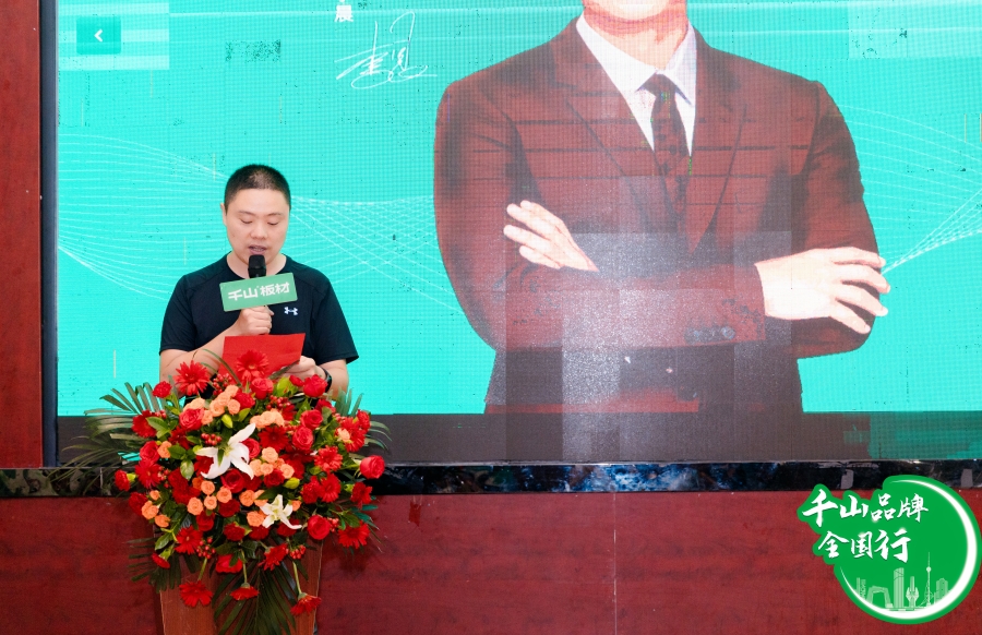 千山板材大區(qū)經(jīng)理王殿忠致辭。王經(jīng)理分享到,2024年,千山以強勁的市場響應(yīng)速度,打造形成更完整的產(chǎn)品體系,并以“現(xiàn)貨庫存 1張起發(fā)”的現(xiàn)貨倉布局為經(jīng)銷商及合作伙伴注入新的發(fā)展動能。