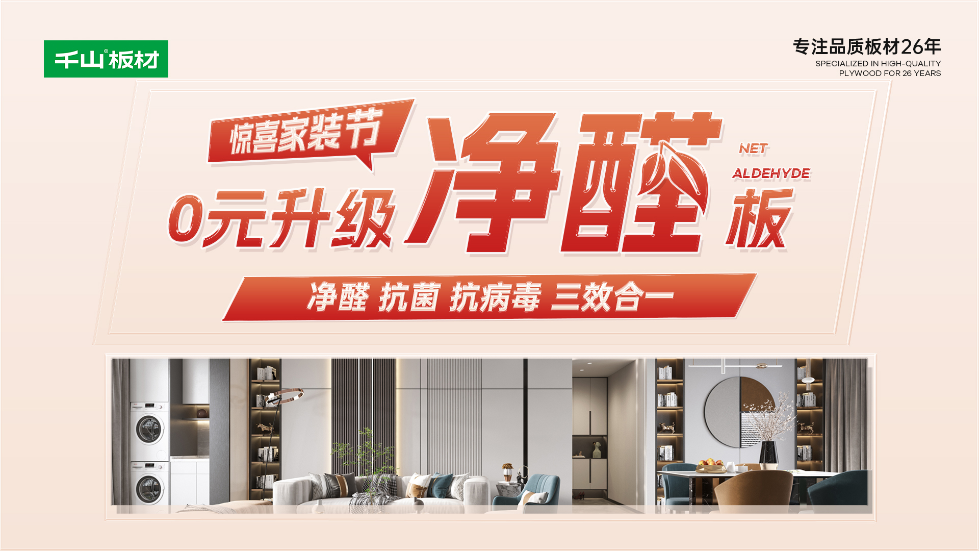 千山板材新一代凈醛板推出后,以凈醛、抗菌、抗病毒三效合一強(qiáng)勢(shì)出圈,受到眾多消費(fèi)者的關(guān)注和咨詢。此次家裝節(jié)千山板材特別推出0元升級(jí)凈醛板福利,王炸產(chǎn)品,全面升級(jí),助力有品青年享受高凈家居生活!
