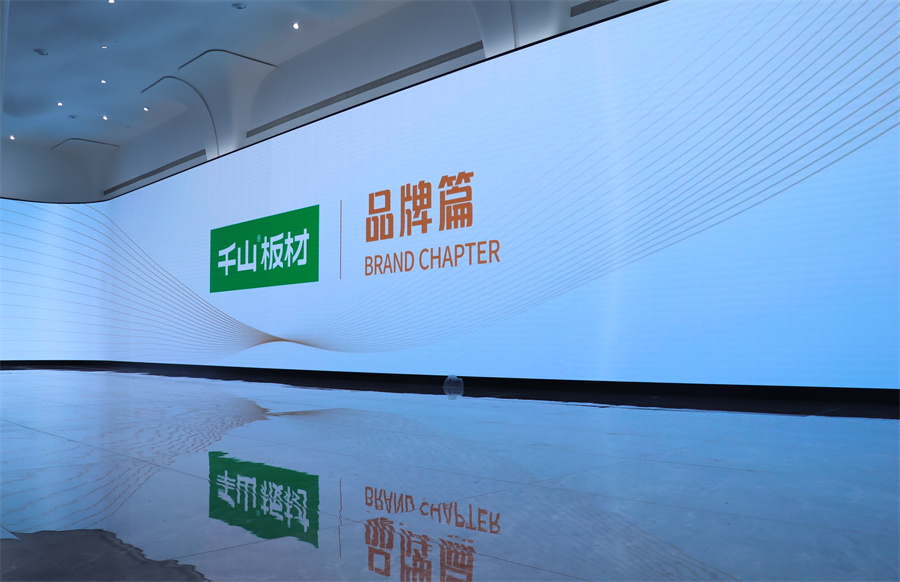 穿過正門大堂左側(cè),迎面而來的是千山集團(tuán)文化展示區(qū),更是集團(tuán)砥礪前行的生動(dòng)敘事。超大LED屏高3.8m、寬27m,是目前臨沂最大的LED屏幕。宣傳片《千山筑夢》講述發(fā)展的故事,傳遞文化的自信,以集團(tuán)全產(chǎn)業(yè)鏈、品牌、產(chǎn)品三大板塊發(fā)展成果為引線,串聯(lián)起千山過去二十六年的風(fēng)雨輝煌路。