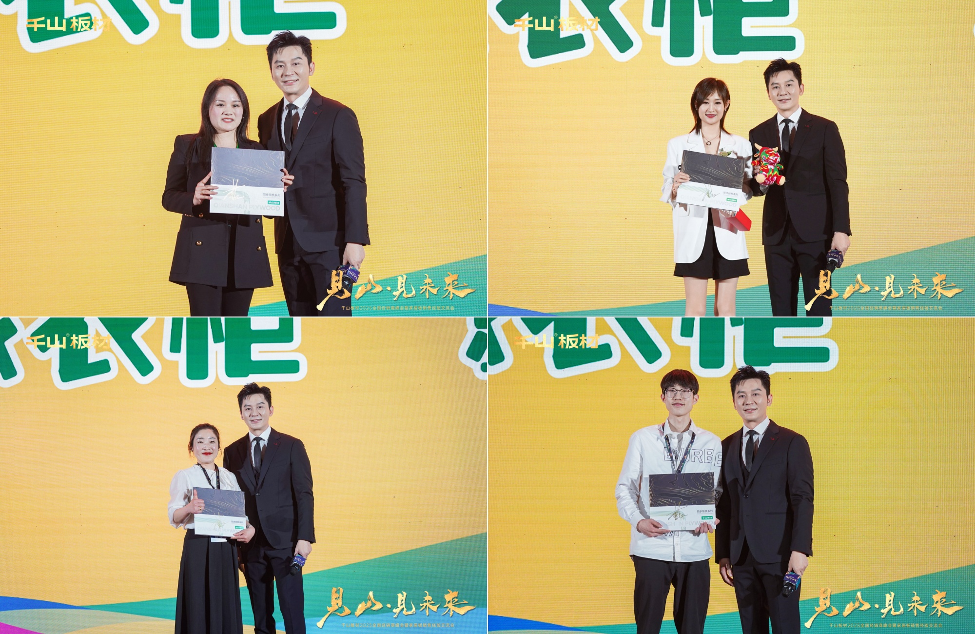 劉董為李晨先生授予“品質(zhì)家居體驗(yàn)官”,同時(shí)為十位在千山板材銷售領(lǐng)域表現(xiàn)卓越的經(jīng)銷商授予了“品質(zhì)家居推廣官”榮譽(yù),不僅是對(duì)他們過(guò)去一年里在提升家居品質(zhì)、推廣優(yōu)質(zhì)板材方面所做出杰出貢獻(xiàn)的肯定,也是對(duì)他們未來(lái)繼續(xù)引領(lǐng)家居潮流、傳遞品質(zhì)生活的期待與鼓勵(lì)。