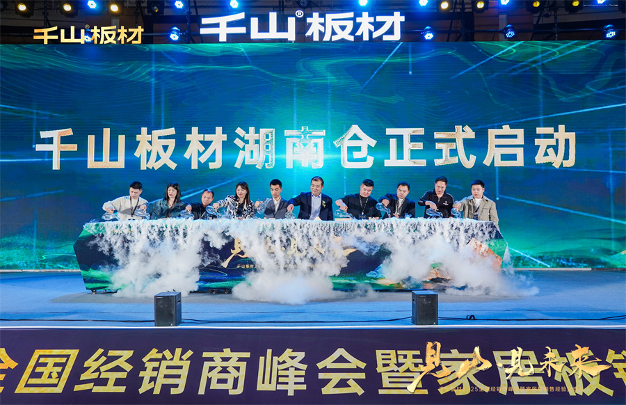 馬彥慶董事長(zhǎng)、王松副總經(jīng)理以及千山板材湖南倉(cāng)經(jīng)銷商代表孫丁娟、李濤、李維新、肖曉燕、陳江南、李輝、劉凡華、周亮共同登臺(tái),攜手啟動(dòng)千山板材全國(guó)現(xiàn)貨倉(cāng)第四大倉(cāng)——湖南倉(cāng)。