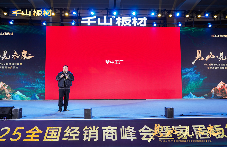 經(jīng)銷商峰會(huì)在千山集團(tuán)董事長(zhǎng)馬彥慶的精彩致辭中拉開序幕,馬董向全國(guó)經(jīng)銷商伙伴致以誠(chéng)摯問候。馬董表示千山將以全產(chǎn)業(yè)鏈、產(chǎn)品領(lǐng)先、品牌發(fā)展、智造驅(qū)動(dòng)為戰(zhàn)略主軸,深耕家居板塊,積極探索家具板的增長(zhǎng)曲線,實(shí)現(xiàn)高質(zhì)量、可持續(xù)發(fā)展。