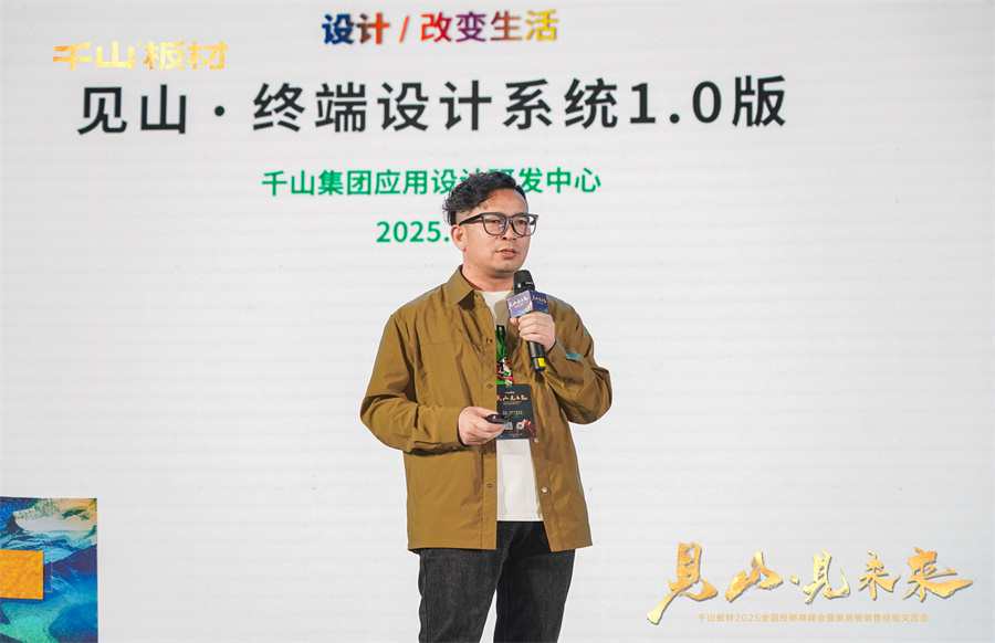 千山應(yīng)用設(shè)計(jì)研發(fā)中心朱云周總監(jiān)詳細(xì)闡述了“見山-終端設(shè)計(jì)系統(tǒng)1.0版”,基于風(fēng)格邏輯、色彩邏輯、材質(zhì)邏輯打通終端應(yīng)用,確保落地場(chǎng)景的呈現(xiàn)效果,賦能終端來(lái)解決客戶需求的痛點(diǎn)問題,從而有效助力經(jīng)銷商的運(yùn)營(yíng)發(fā)展。
