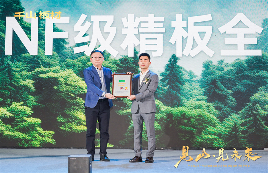 中國(guó)最具領(lǐng)導(dǎo)力和權(quán)威性的認(rèn)證公司——尚普咨詢集團(tuán),其資深合伙人曹頡先生親臨峰會(huì)現(xiàn)場(chǎng),為千山板材帶來(lái)極具分量的權(quán)威認(rèn)證——千山板材HENF級(jí)精板全國(guó)銷量第一!這一榮譽(yù)不僅彰顯了千山板材在市場(chǎng)上的卓越表現(xiàn),更激勵(lì)著千山繼續(xù)前行,勇攀高峰。