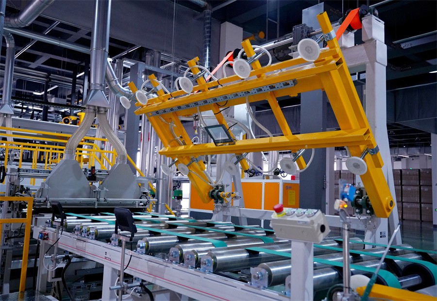 作為“壓貼領(lǐng)域的領(lǐng)導(dǎo)者”,溫康納在短周期壓貼領(lǐng)域處于世界領(lǐng)先地位,占據(jù)了國內(nèi)高端市場。相比于傳統(tǒng)壓貼產(chǎn)線數(shù)分鐘的周期,溫康納產(chǎn)線的壓貼周期大幅壓縮,效率提升數(shù)倍以上,產(chǎn)能可達到4800張/20小時。 溫康納智能化產(chǎn)線實現(xiàn)全流程自動化無縫銜接,從自動上下料、自動進板裝置到壓機壓貼、清邊倒角、翻板檢驗等,每個環(huán)節(jié)都實時調(diào)控。更令人驚嘆的是紅外激光精準(zhǔn)對紋系統(tǒng),將誤差嚴(yán)格控制在毫米級以內(nèi),使板材紋理對接的美觀度實現(xiàn)質(zhì)的飛躍。 溫康納生產(chǎn)線保證了板材在最大壓貼范圍內(nèi)材料之間的最小厚度差,能夠更靈活地使用基材,同時確保產(chǎn)品質(zhì)量的穩(wěn)定性。溫康納的精密與進口鋼板“珠聯(lián)璧合”,將使千山板材潮流花色達到行業(yè)新高度,實現(xiàn)高顏、高質(zhì)、高品體驗。 溫康納生產(chǎn)線的引進是千山智能制造戰(zhàn)略的重要組成部分。在消費升級和產(chǎn)業(yè)轉(zhuǎn)型的大背景下,千山并沒有選擇簡單擴大產(chǎn)能的道路,而是通過引進頂尖技術(shù)裝備,實現(xiàn)從“制造”到“智造”的跨越。