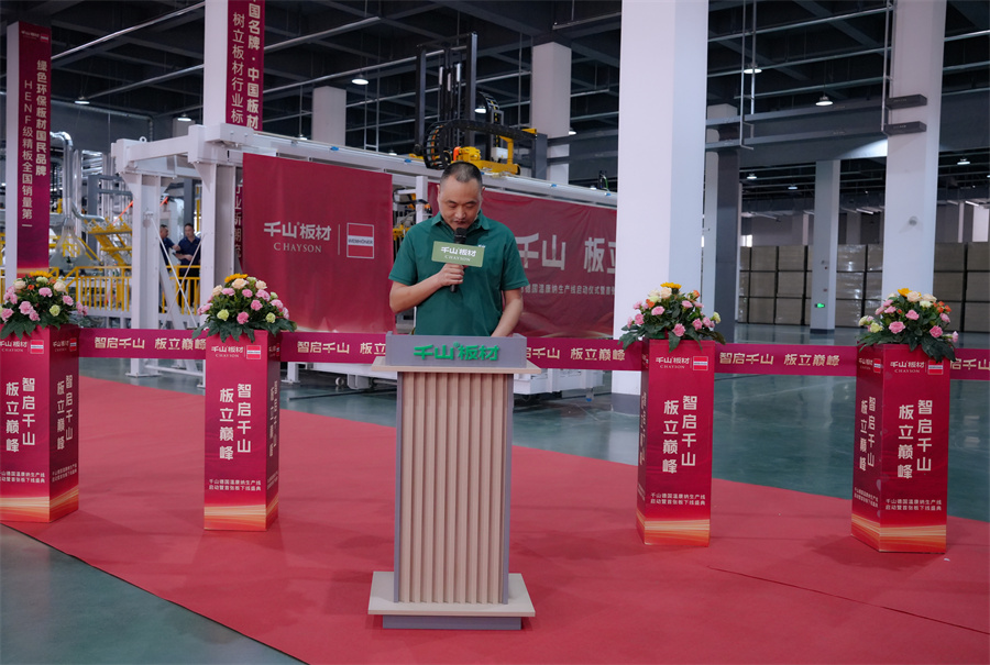 在消費升級的大浪潮下,市場對板材的品質(zhì)、環(huán)保及個性化需求日益提升。溫康納生產(chǎn)線的引入,正是千山響應(yīng)市場趨勢、賦能集團發(fā)展、共同為終端客戶創(chuàng)造價值的有力舉措。千山板材將攜手全國經(jīng)銷商,將這份“技術(shù)領(lǐng)先”優(yōu)勢,轉(zhuǎn)化為強勁的市場競爭力。 聚焦于生產(chǎn)制造環(huán)節(jié)的革新,邱總表示:德國溫康納生產(chǎn)線以高度自動化、精細(xì)化、智能化和穩(wěn)定性著稱。它的引入,將大幅提升效能、加碼品質(zhì),確保千山板材的出廠產(chǎn)品具備高端品質(zhì)的一致性,這也是千山踐行“品質(zhì)過硬”’承諾最堅實的保障。