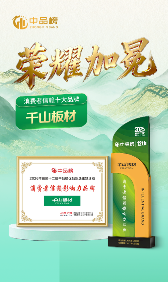正因如此,千山連續(xù)多年榮獲“消費(fèi)者信賴(lài)十大品牌”稱(chēng)號(hào)。這份榮譽(yù),源于每一張訂單的準(zhǔn)時(shí)交付,源于每一塊板材的品質(zhì)如一,更源于萬(wàn)千家庭對(duì)千山品牌的長(zhǎng)期認(rèn)可。千山將以此為鞭策,繼續(xù)以誠(chéng)立信、以行踐諾,不負(fù)每一份托付。
