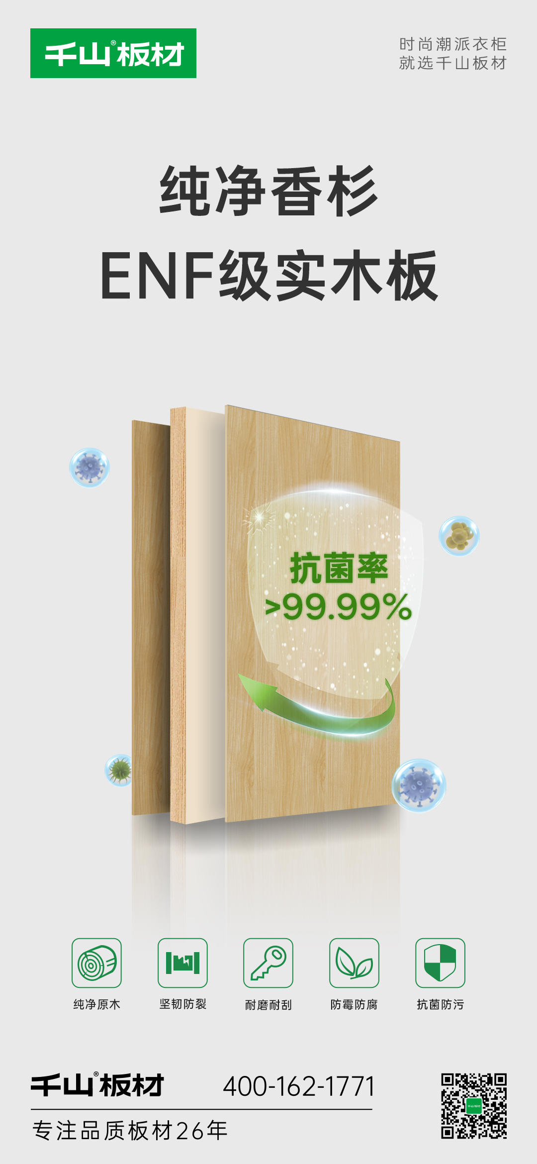 千山板材實木板順勢而生,甄選天然香杉木為原料,自帶原木醇香,實木芯性能更優(yōu)異,環(huán)保達國標最高ENF級,用品質(zhì)呵護我們的家居健康。