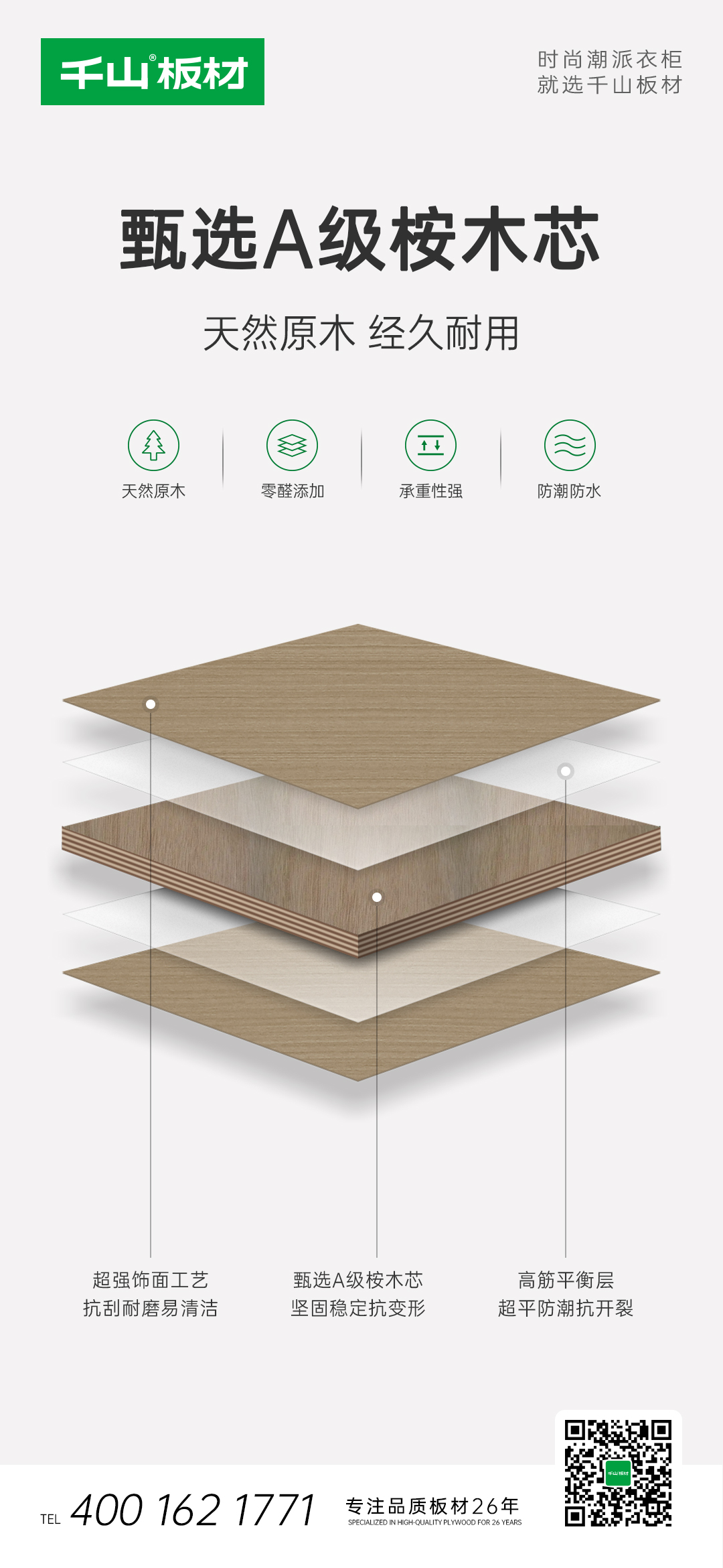 好的背板不但可以讓柜子更加穩(wěn)固,還可以起到防潮防霉的作用,所以背板的使用至關(guān)重要。千山板材實(shí)木多層背板配置4.6厘/5厘/7厘/9厘等多種規(guī)格,充分滿足多樣化的產(chǎn)品需求。
