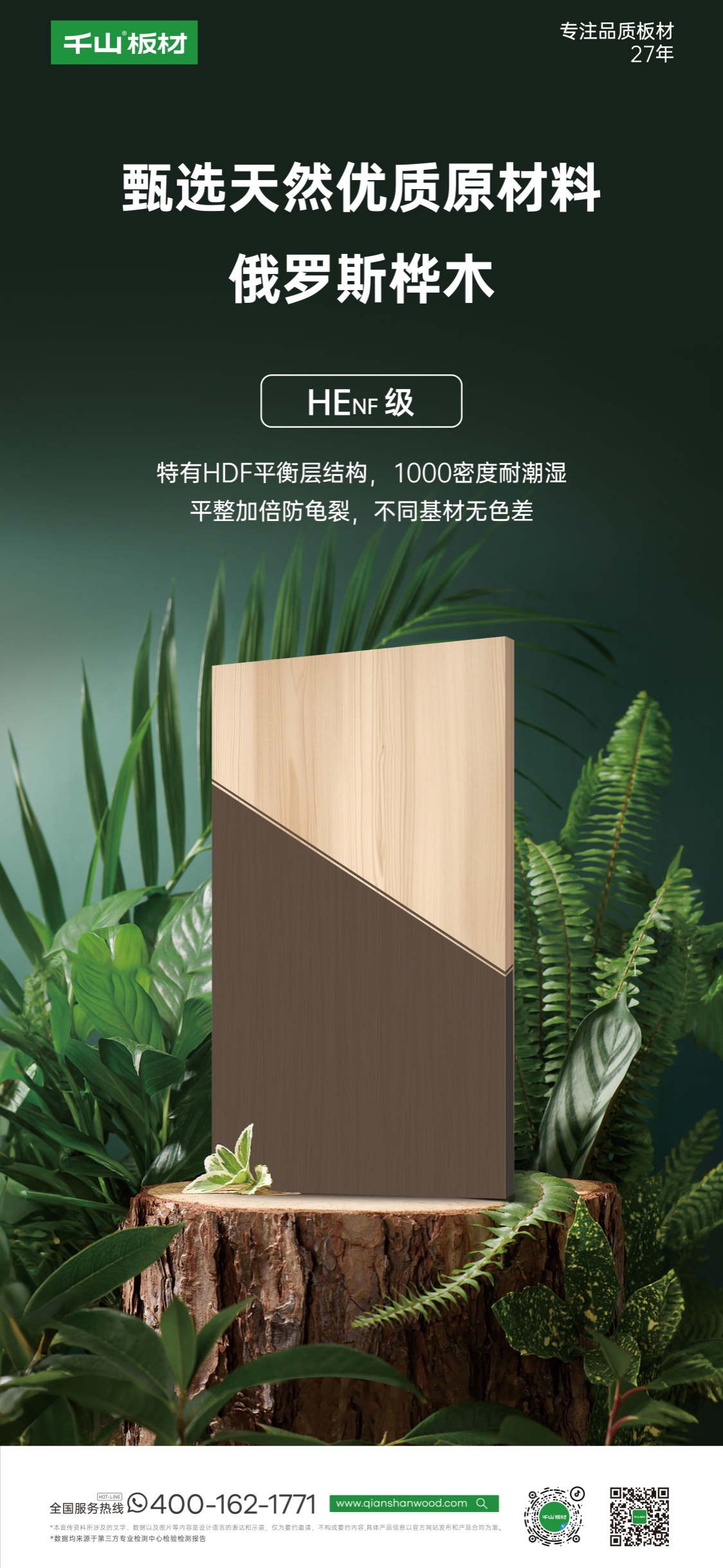 飾面采用德國(guó)哈特曼油墨印刷,北人高端印刷機(jī)、益維高浸漬線、世界領(lǐng)先壓貼設(shè)備溫康納強(qiáng)力加持,造就耐磨耐刮、持久抗褪色、防水防潮的超強(qiáng)飾面。潮派木紋系列、經(jīng)典純色系列、輕奢石紋系列、時(shí)尚數(shù)碼系列、主流PET系列,百余款潮流花色可選,隨心定制,可滿足不同的家裝風(fēng)格需求。外在展現(xiàn)精致形態(tài),內(nèi)在錘煉核心品質(zhì)。俄羅斯樺木與千山精工飾面工藝相結(jié)合,呈現(xiàn)花色與原木的完美同步。千山板材俄羅斯樺木板全國(guó)上新,歡迎品鑒!