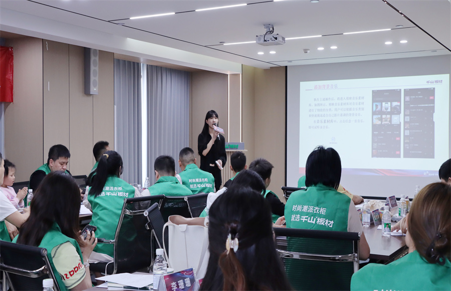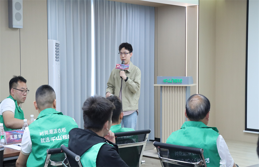 千山板材河南運(yùn)營(yíng)中心總經(jīng)理程效章致辭。程總表示,短視頻和直播已成為搶占市場(chǎng)的核心賽道,抖音也將是經(jīng)銷(xiāo)商伙伴們開(kāi)拓新市場(chǎng)的“超級(jí)武器”,希望伙伴們通過(guò)此次賦能特訓(xùn)掌握短視頻的營(yíng)銷(xiāo)密鑰,在家居藍(lán)海中共贏未來(lái)!