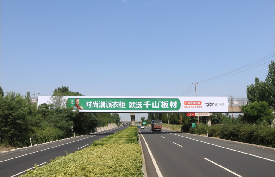 近日,千山在山東省重點(diǎn)高速路段投放14座跨線橋和立柱媒體廣告,再次橫跨山東省內(nèi)多條主干線,如泰新高速、京臺(tái)高速、日蘭高速、青銀高速等,覆蓋山東省及其他省市區(qū)域。高速?gòu)V告形式依舊涵蓋跨線橋、單立柱等,廣告畫面鮮艷,以綠色為主色調(diào),可視距離美觀、簡(jiǎn)潔,進(jìn)一步將“時(shí)尚潮派衣柜 就選千山板材”的品牌主張傳遞給更多的消費(fèi)