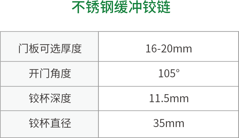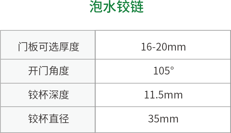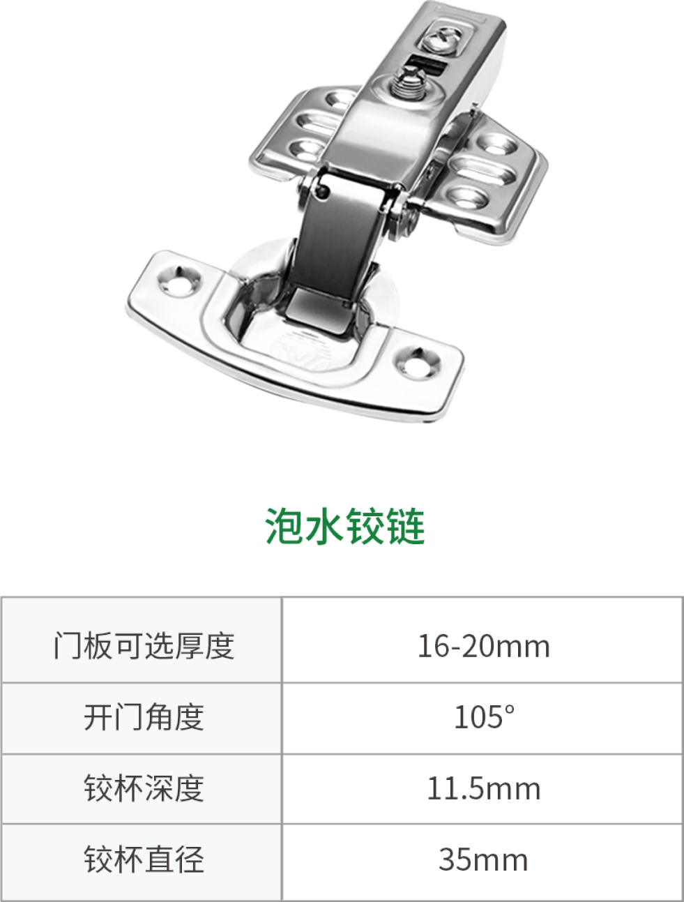 作為定制櫥柜領域內連接柜體和柜門的五金配件,分為可拆卸(自卸)和不可拆卸(固裝)兩個類別和三種規(guī)格即中彎(半蓋)、直臂(全蓋)、大彎(不蓋)。