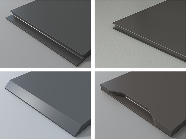 可做造型有J型、C型、45度斜邊、牛角四種平板封邊工藝,并采用德國(guó)豪邁S500激光封邊或德國(guó)膠王PUR封邊。